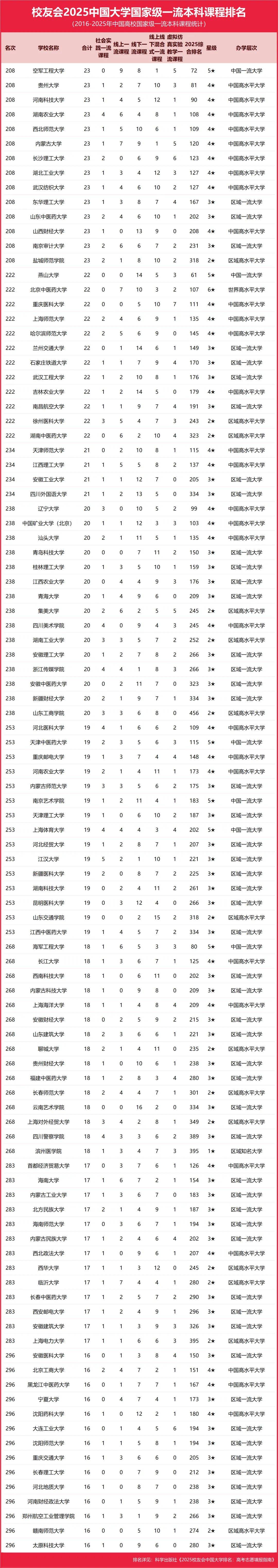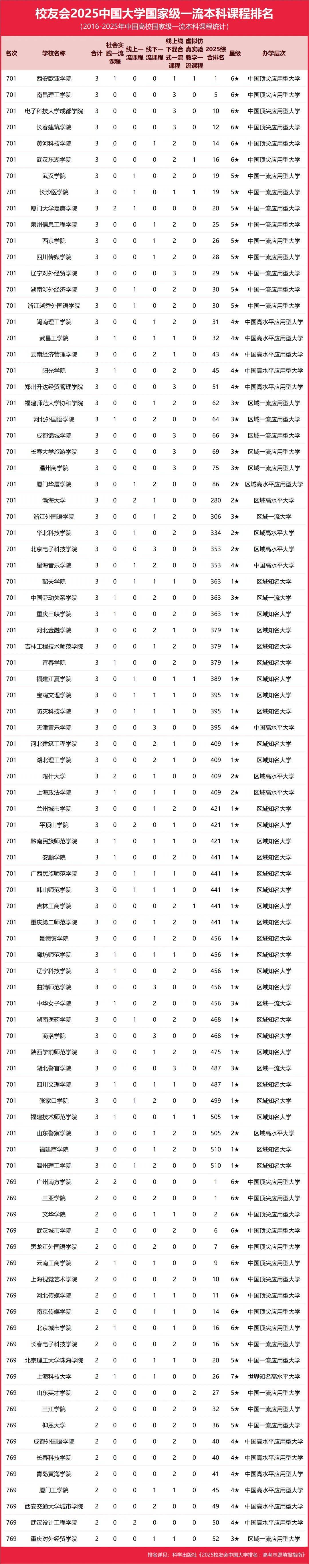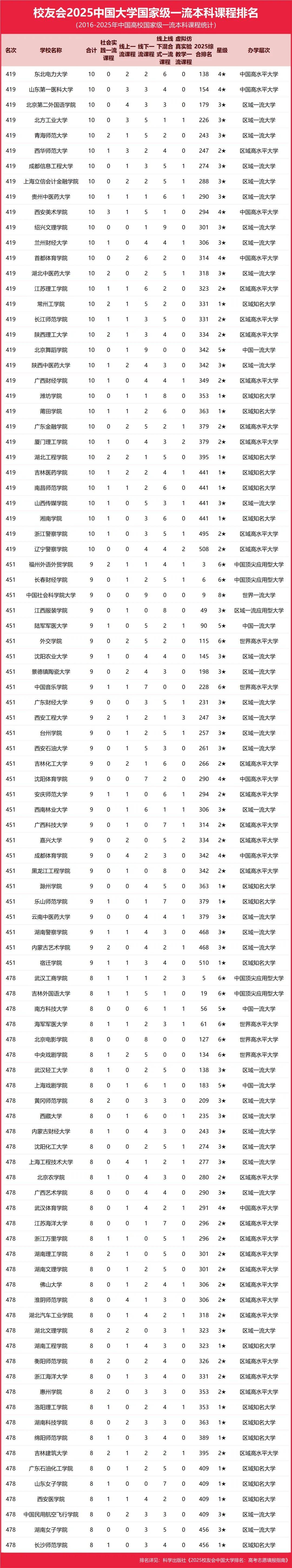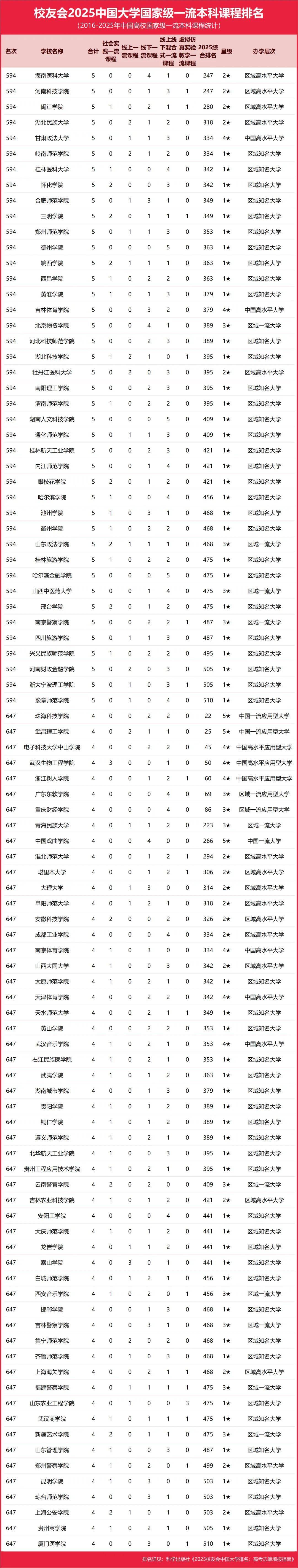 2025年12月3日,全国第三方大学评价机构艾瑞深校友会网(cuaa.net)公布2016-2025中国高校国家级一流本科课程统计结果,最新发布校友会2025中国大学国家级一流本科课程排名。